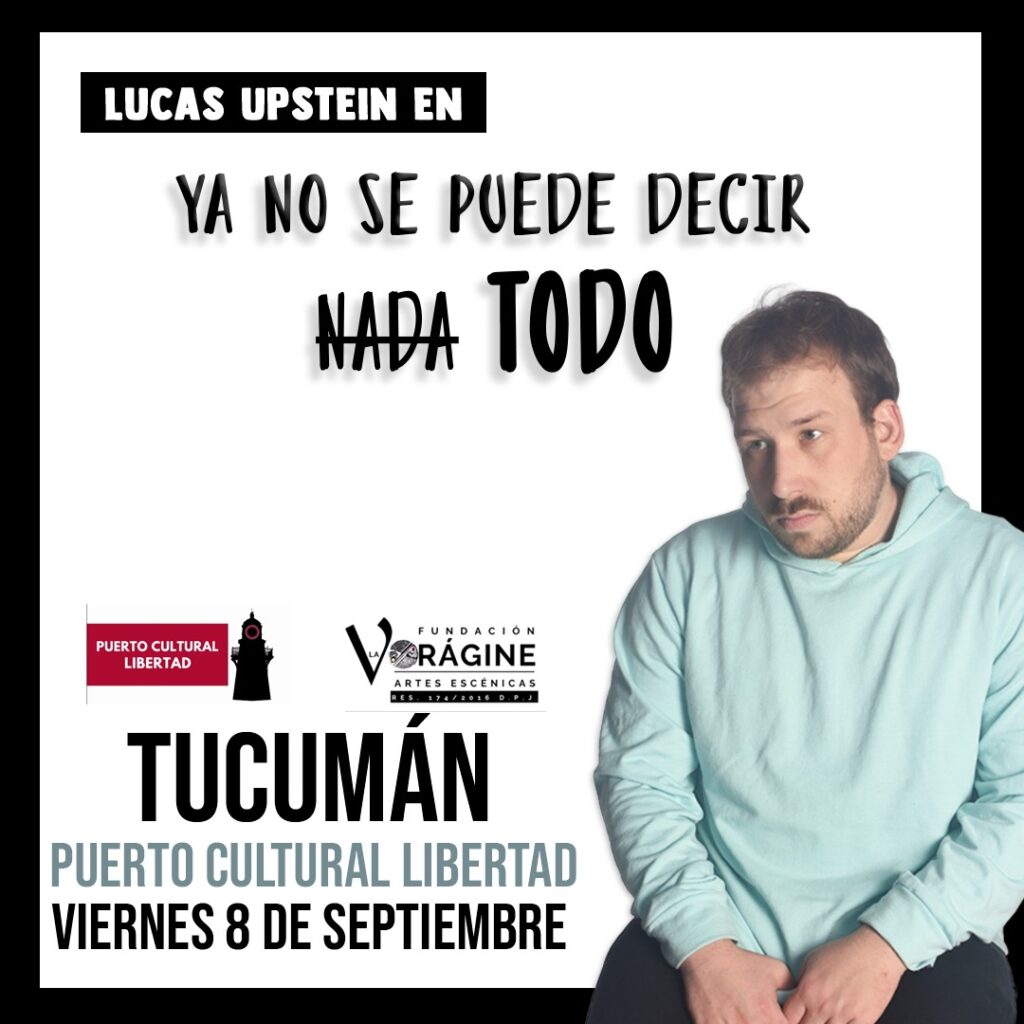 El 8 de septiembre a partir de las 21 hs. llega, por segundo año consecutivo, Lucas Upstein a Puerto Cultural Libertad (Las Piedras 1850) con motivo de su nuevo show de stand up «Ya no se puede decir nada». El evento es apto para mayores de 16 años.
