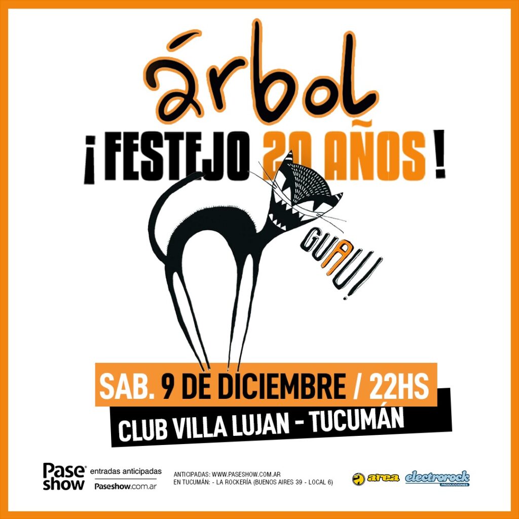 Árbol cuenta con una trayectoria de más de 20 años. En su recorrido grabaron 6 discos de estudio, uno en vivo y dos DVDs bajo la producción del gran Gustavo Santaolalla. La legendaria banda de Haedo se encuentra girando por todo el país para festejar los «20 años de Guau!», como solo ÁRBOL sabe hacerlo.