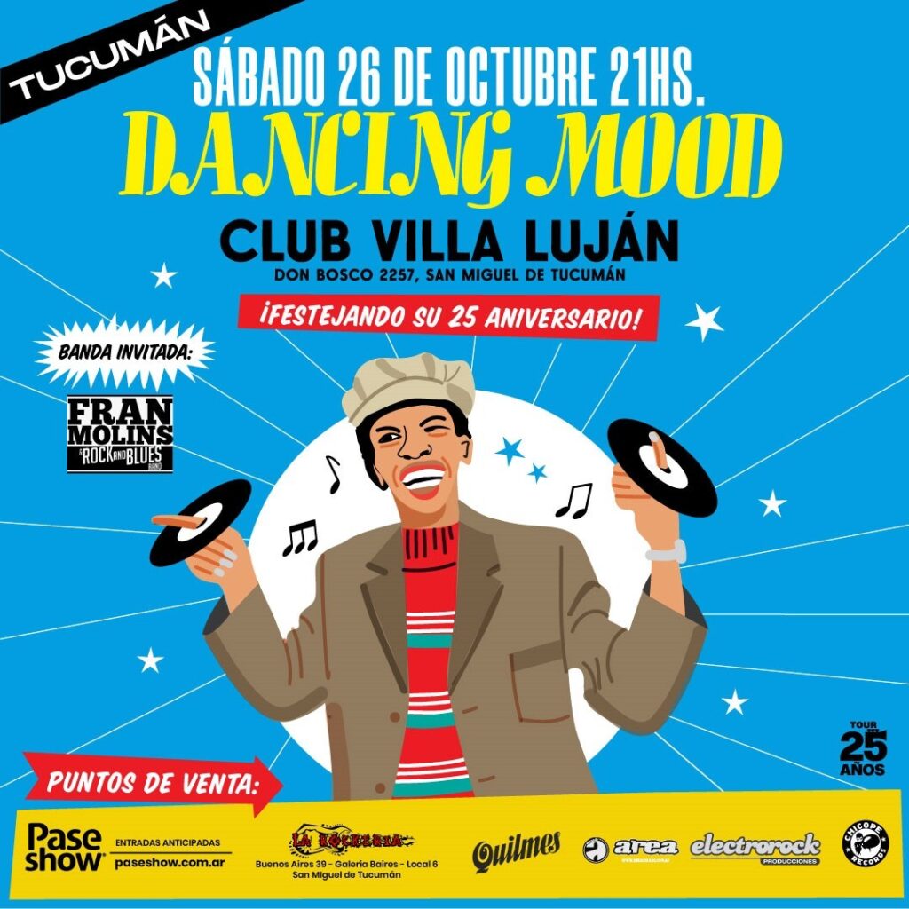 «Dancing Mood» se presentará el próximo sábado 26 de octubre, a las 21 hs, en el Club Villa Luján (Don Bosco 2257) para festejar su *25° Aniversario* con el público tucumano.