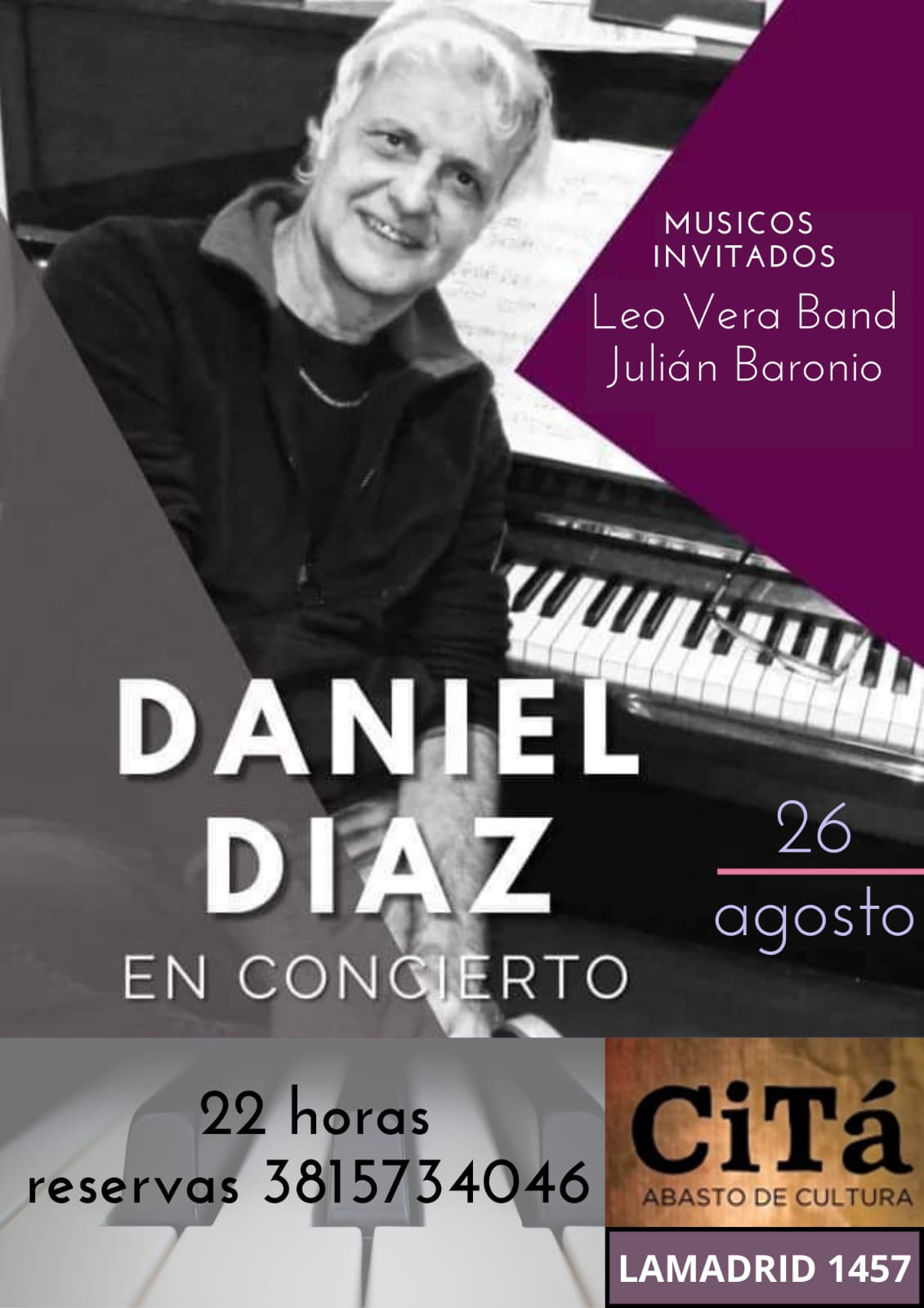 La cita está prevista para este viernes 26 de Agosto a partir de las 22 hs en Citá, Abasto de Cultura (Lamadrid 1457) dónde se presentará Daniel Díaz junto a músicos tucumanos invitados.