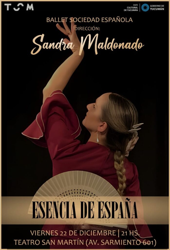 El Ballet de la Sociedad Española, bajo la dirección de Sandra Maldonado, presenta su show de fin año “Esencia de España”, este viernes 22 de diciembre, a las 21 hs, en el Teatro San Martín, Avda. Sarmiento 601.