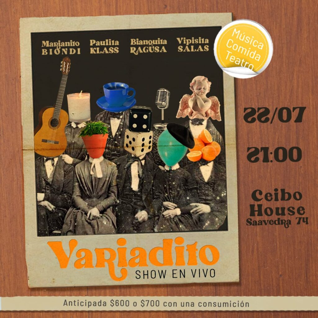 Este viernes 22 de Julio a partir de las 21 hs. se va a desarrollar el «VARIADITO SUPER SHOW» en vivo en Ceibo House (Saavedra 74 ).