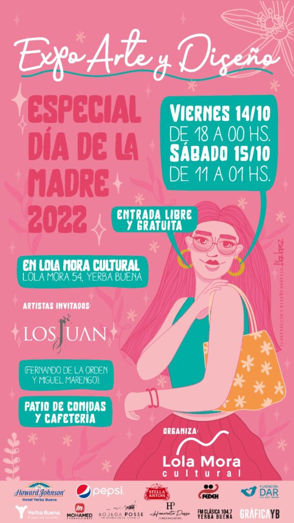 El próximo viernes 14 y sábado 15 de octubre se realizará en Lola Mora Cultural (Lola Mora 54 – Yerba Buena) la tradicional Expo Arte y Diseño, en su edición Día de la Madre 2022, que reúne artistas, artesanos y diseñadores de nuestro medio. La entrada es libre y gratuita.
