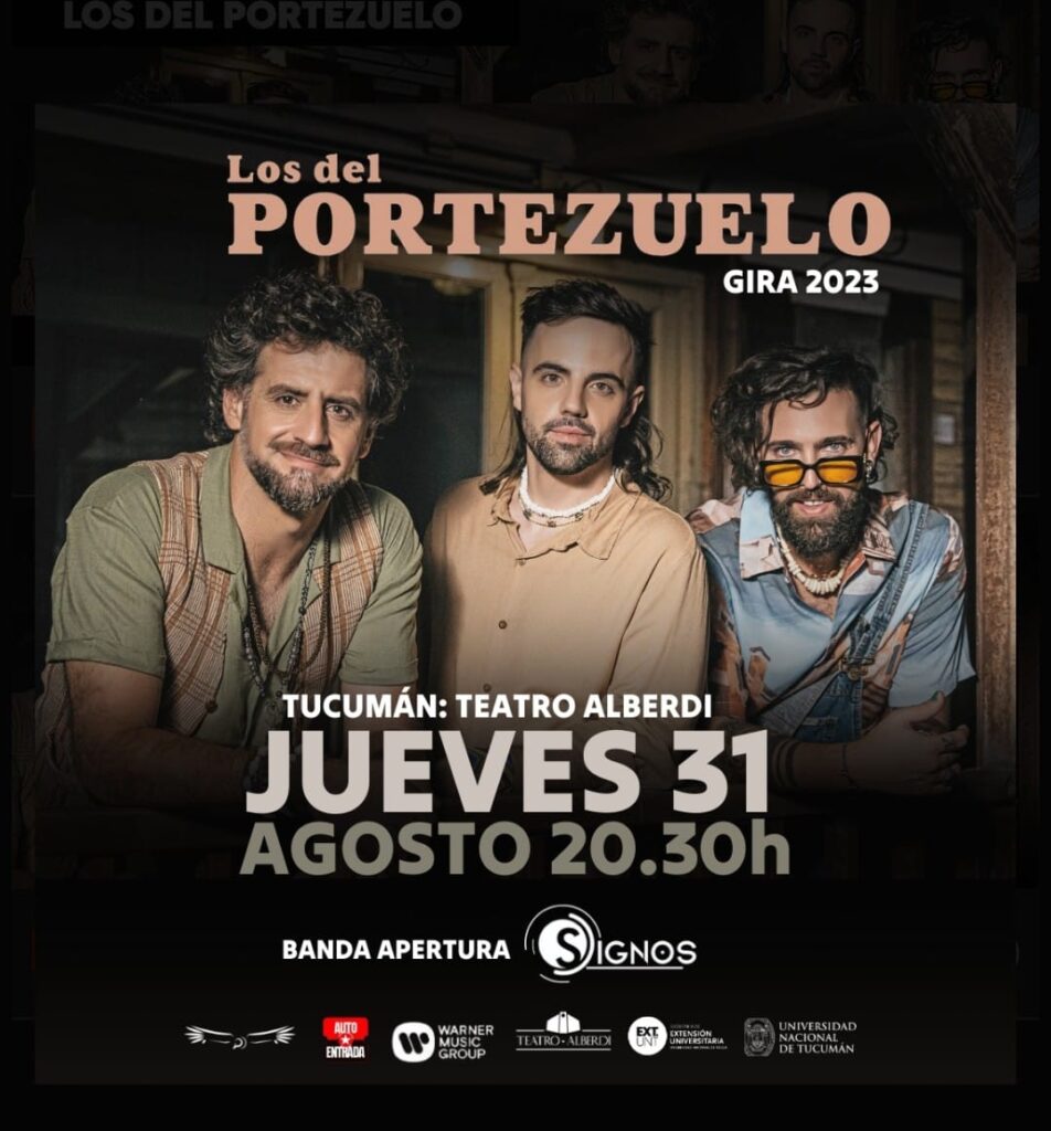 Los del Portezuelo llegan a Tucumán a presentarse en el Teatro Alberdi (Crisostomo y Av. Jujuy), el próximo jueves 31 de agosto a las 20.30 hs. La banda integrada por Agustín Day, Francisco Oliver y Diego Cardero tiene 11 años de trayectoria y, su música nace de una raíz folclórica enriquecida con sonidos y ritmos modernos que los define en su identidad, combinando un repertorio propio con clásicos del cancionero popular.
