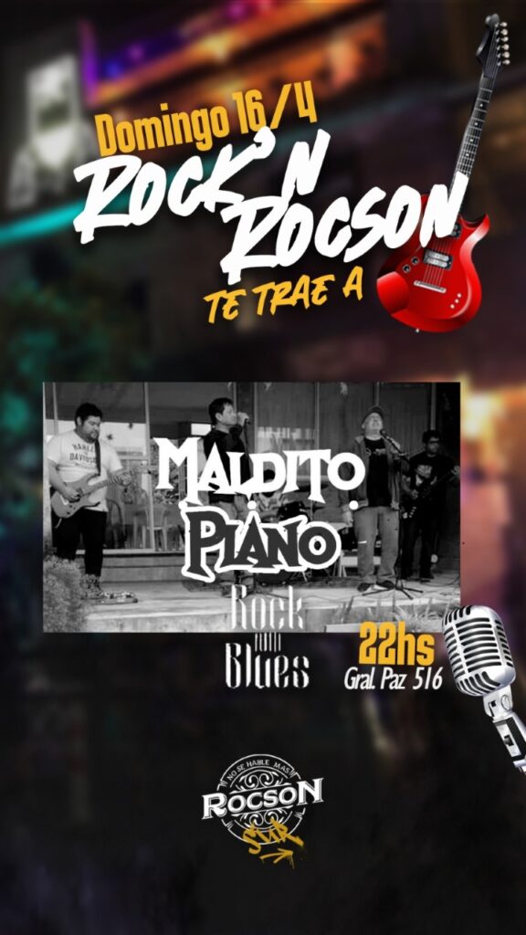 La cita está prevista para este domingo 16 de Abril a partir de las 22 hs. en Rocson Sur (General Paz 516) dónde, en el marco del ciclo Rock´n Rocson se presentará la banda tucumana «Maldito Piano».