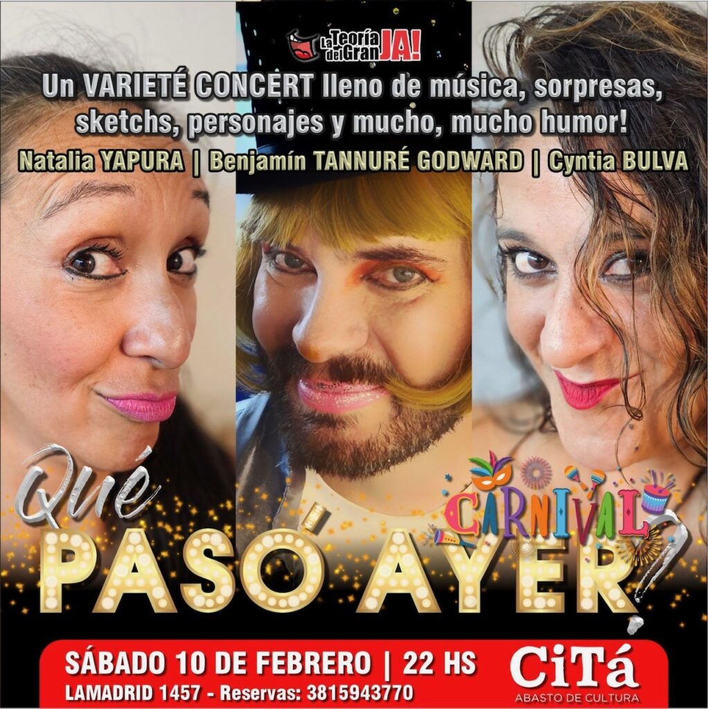 “Qué pasó ayer? Carnival” es una nueva versión del espectáculo de varieté concert que ya tuvo una exitosa temporada 2023, y que se presentará este sábado 10 de febrero, a las 22 hs en Citá, Abasto de Cultura (Lamadrid 1457).
