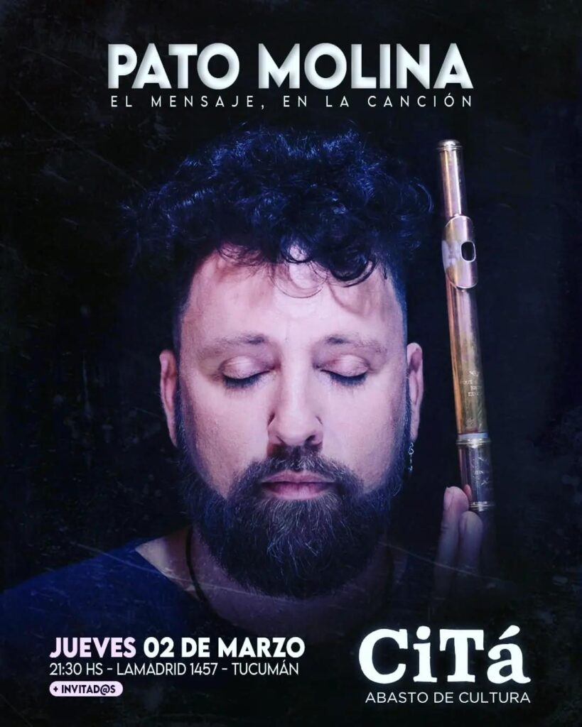 Pato Molina se presenta este jueves 2 de marzo, a partir de las 21:30 hs., en Citá Abasto de Cultura (Lamadrid 1457).