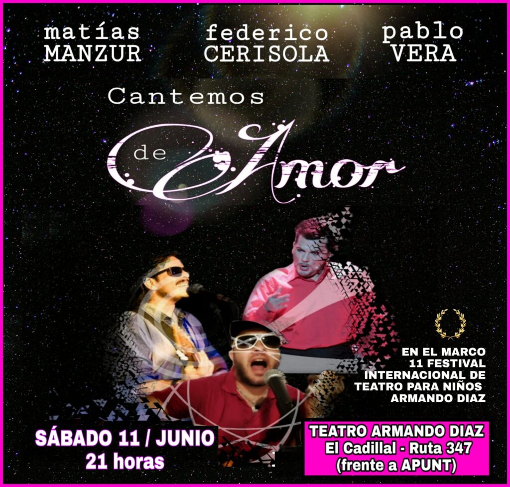 “Cantemos de amor” se denomina el espectáculo musical-teatral en el cual Matías Manzur, Federico Cerisola y Pablo Vera realizan un recorrido por el cancionero hispanoamericano de las décadas del 80 y del 90.