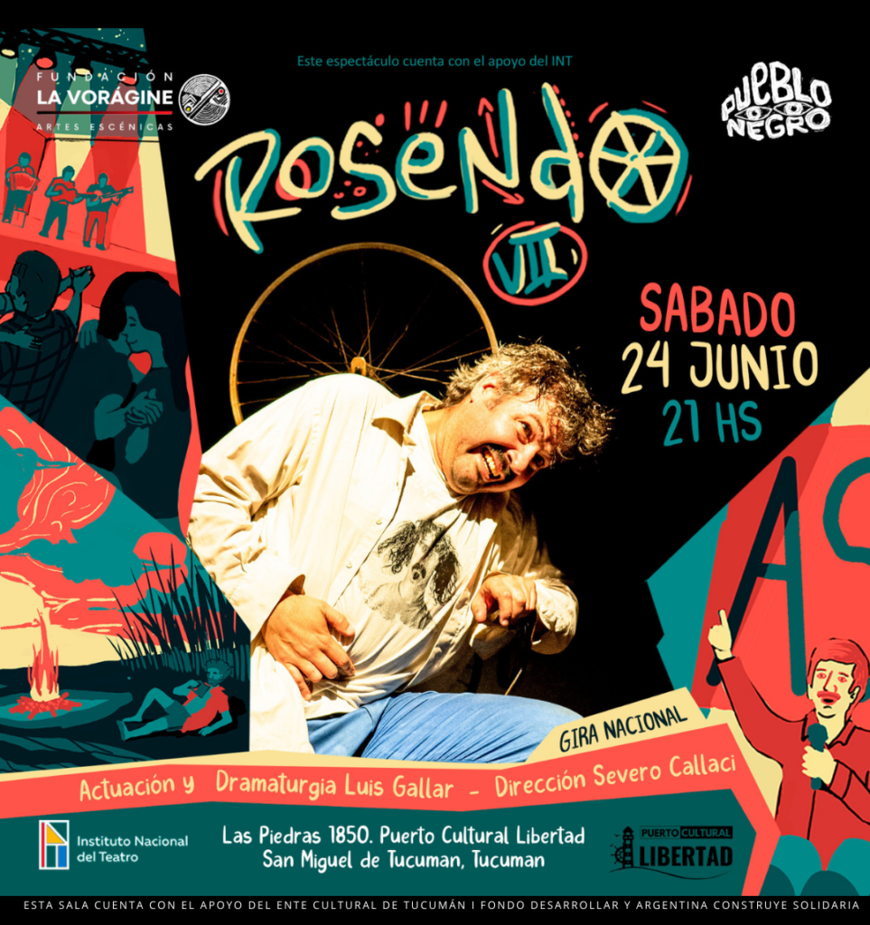 El sábado 24 de junio a las 21 hs., llega «ROSENDO VII» a Puerto Cultural Libertad (Las Piedras 1850). La obra es una comedia dramática apta para todo público del Grupo Pueblo Negro de Santiago del Estero.