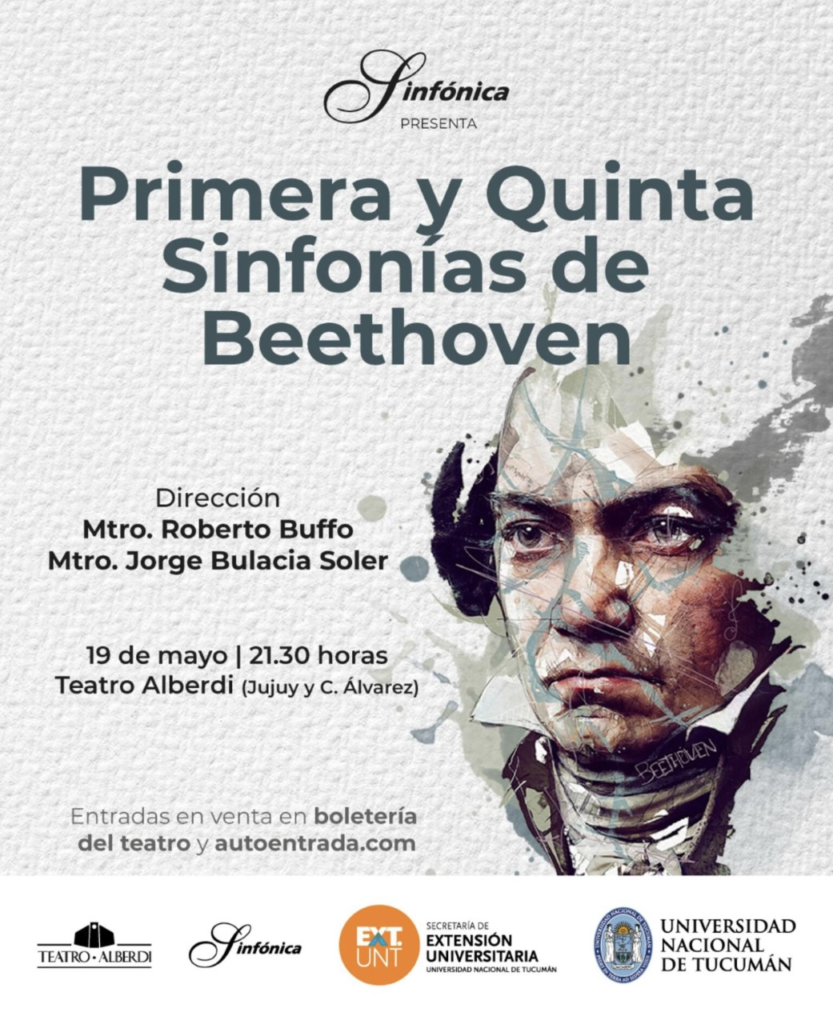Beethoven ha sido, a lo largo de la historia de nuestra Orquesta, un compositor icónico de referencia, y sin dudas el más ejecutado. En el año del septuagésimo quinto aniversario de la OSUNT, que se celebrará en noviembre con la Novena Sinfonía, el Mtro Roberto Buffo programó sus sinfonías para honrar al gran compositor alemán. Así, este concierto incluye dos de sus más icónicas obras: la Primera, como gran homenaje al siglo XVIII que Beethoven iba dejando atrás con su avasallante genio creativo, y la celebérrima Quinta, ya expresión plena de su madurez compositiva.