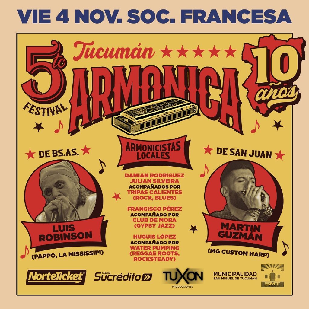 Con la armónica como estrella estelar de la noche, se llevará a cabo el 5° Festival el próximo viernes 4 de noviembre, desde las 22 hs. en la Sociedad Francesa de Tucumán (San Juan 751).