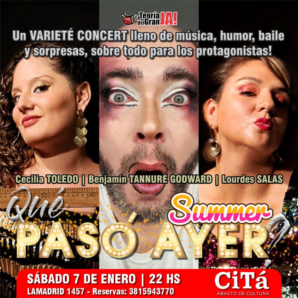 “Qué pasó ayer? Summer” es una nueva versión del espectáculo de varieté concert, que se presentará desde este sábado 7 de enero, y todos los sábados del mes, a las 22 hs en Citá Abasto de Cultura (Lamadrid 1457).