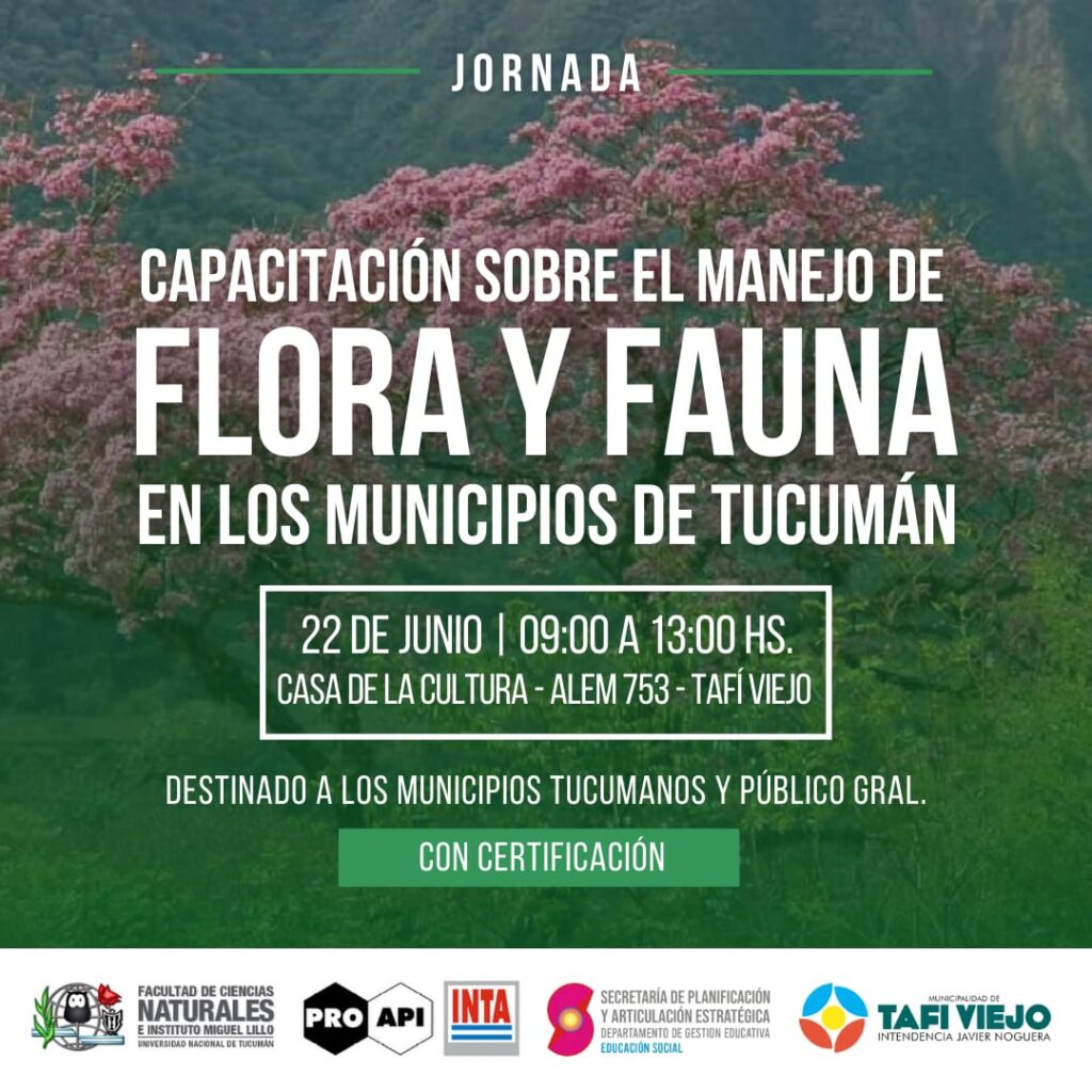 Este miércoles de 9 a 13, Se realizará la Capacitación sobre el manejo de flora y fauna en los municipios tucumanos. Será en la Casa de la Cultura de Tafí Viejo (Alem 753). La actividad está organizada por la Secretaría de Planificción y Articulación Estratégica de Tafí Viejo, la Secretaría de Extensión de la Facultad de Ciencias Naturales de la UNT, INTA, y Pro Api.