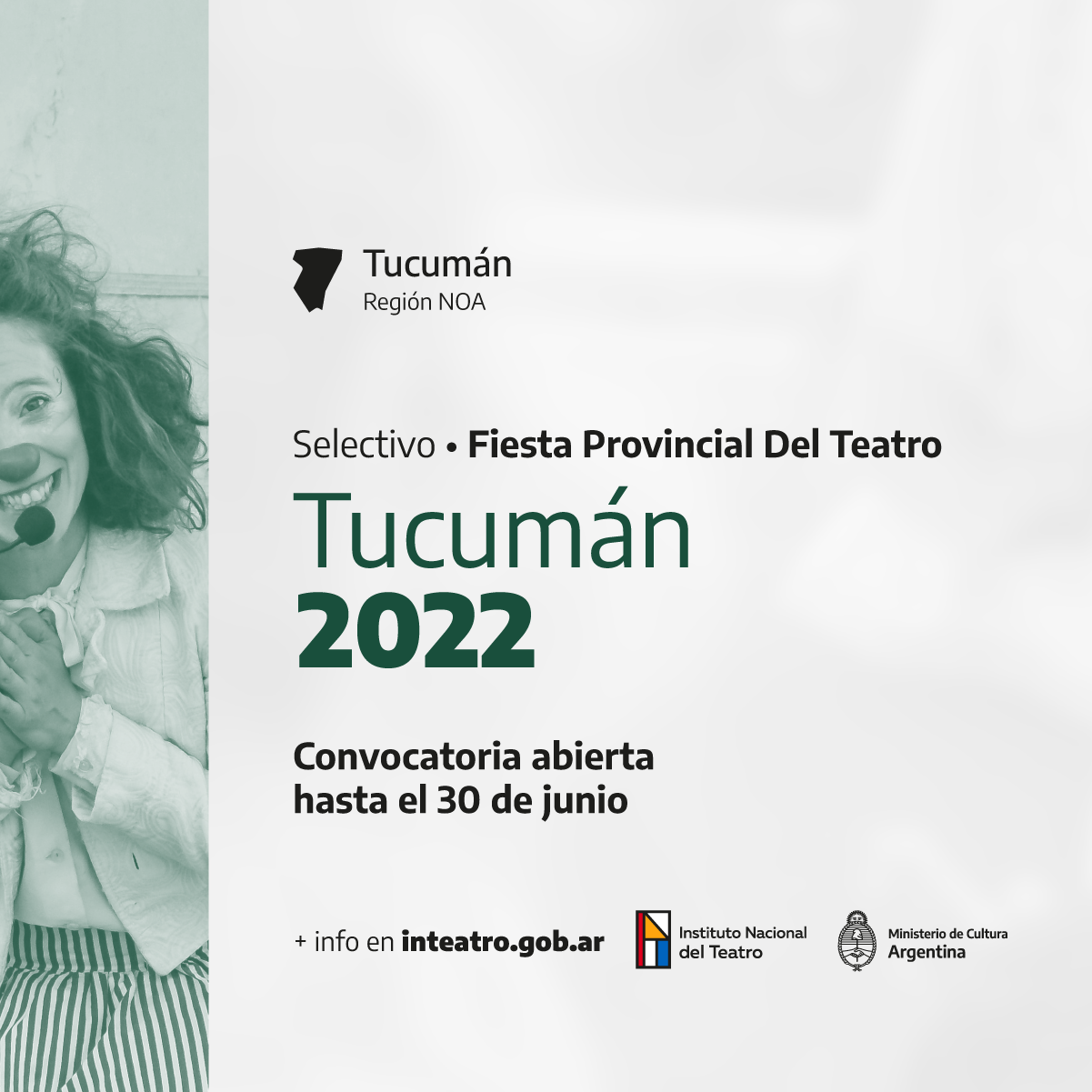 El Ministerio de Cultura de la Nación y el Instituto Nacional del Teatro convocan a elencos locales para la Fiesta Provincial del Teatro de Tucumán 2022. La inscripción estará abierta hasta el 30 de junio inclusive.