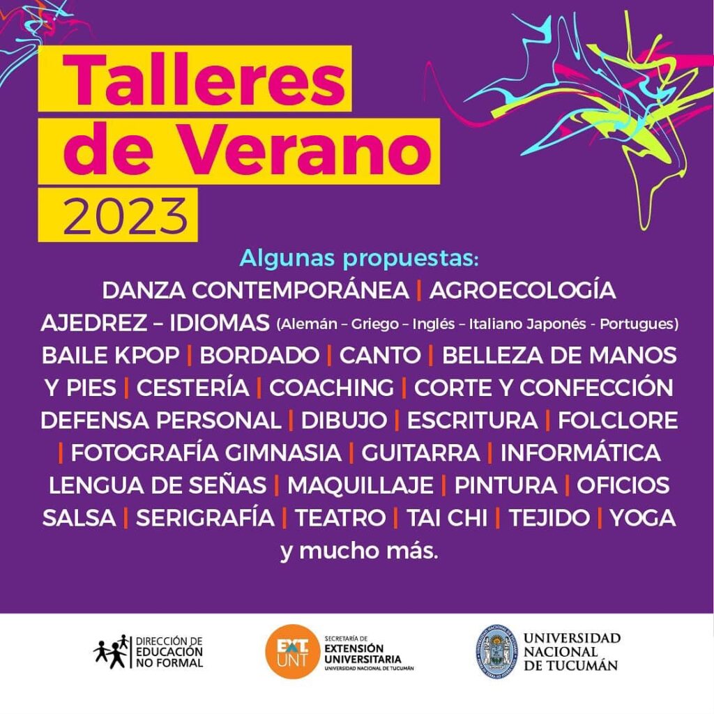 Más de 50 talleres destinados a niños, jóvenes y adultos es la propuesta para este verano de Secretaría de Extensión Universitaria, a través de la Dirección de Educación No Formal.