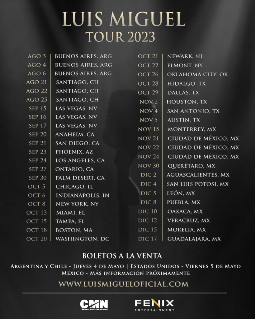 “Luis Miguel Tour 2023” será producida por Cardenas Marketing Network, Inc. CMN, y Fénix Entertainment.