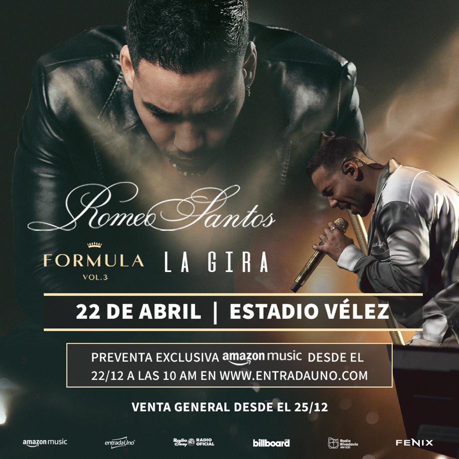 En su próximo show en Estadio Vélez no faltarán clásicos como “Propuesta Indecente”, “Imitadora” y “Eres Mía”, así como los singles de su flamante nuevo álbum “Fórmula, Vol. 3” que ha recibido la aclamación mundial por sus éxitos “Sin Fin” junto a Justin Timberlake , “El Pañuelo” junto a Rosalía, “Me Extraño” junto a Christian Nodal, “Bebo”, “Sus Huellas” y el más reciente “SIRI” junto al artista urbano dominicano Chris Lebrón, que se convirtió en el tema más buscado en República Dominicana en las plataformas Spotify y Apple a horas de su lanzamiento.