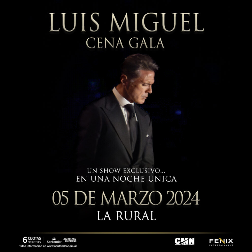 Un espectáculo súper exclusivo para 2200 personas que se llevará a cabo en el Pabellón Amarillo de La Rural de la Ciudad de Buenos Aires. Esta velada inigualable incluirá un show exclusivo de Luis Miguel, cocktail de recepción, menú de 3 pasos y parking.