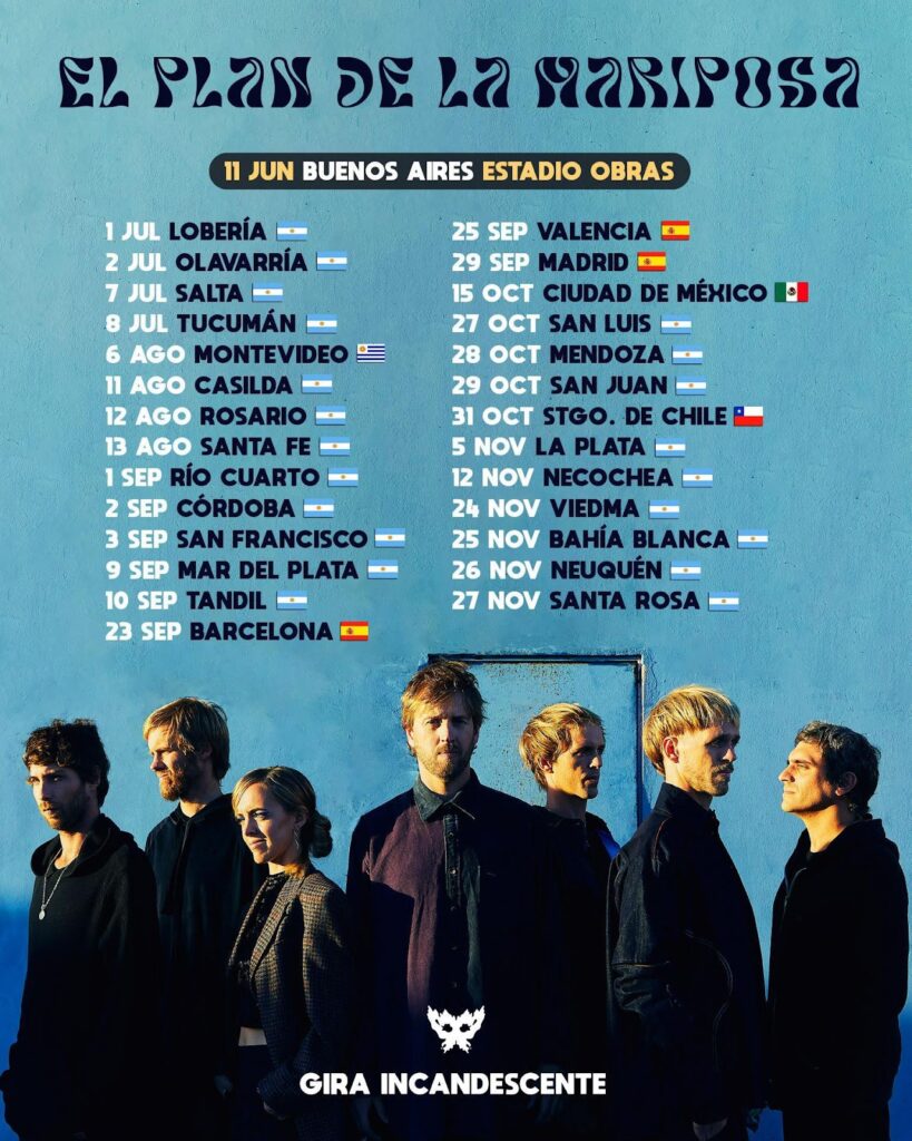 El Plan de la Mariposa viene de tocar el pasado 11 de junio, por segunda vez en su historia, en el mítico estadio Obras Sanitarias donde agotaron las localidades .“Fue muy loco, es como un punto de llegada y un punto de partida a la vez, una fecha que era bisagra y muy importante para nosotros, como puntapié de la gira de este año, una gira muy intensa”, resumió Santiago Andersen, violinista y artista visual del grupo oriundo de Necochea.