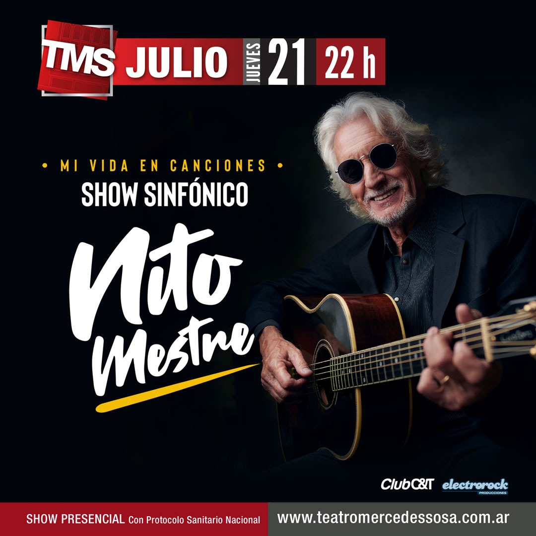 En esta nueva gira que lo lleva por los escenarios del país Nito Mestre presentará su nuevo show titulado «Mi Vida en Canciones» donde recorrerá toda su historia musical con una lista de temas que incluyen los éxitos de sus 11 discos solista y los clásicos de Sui Generis en clave sinfónica.